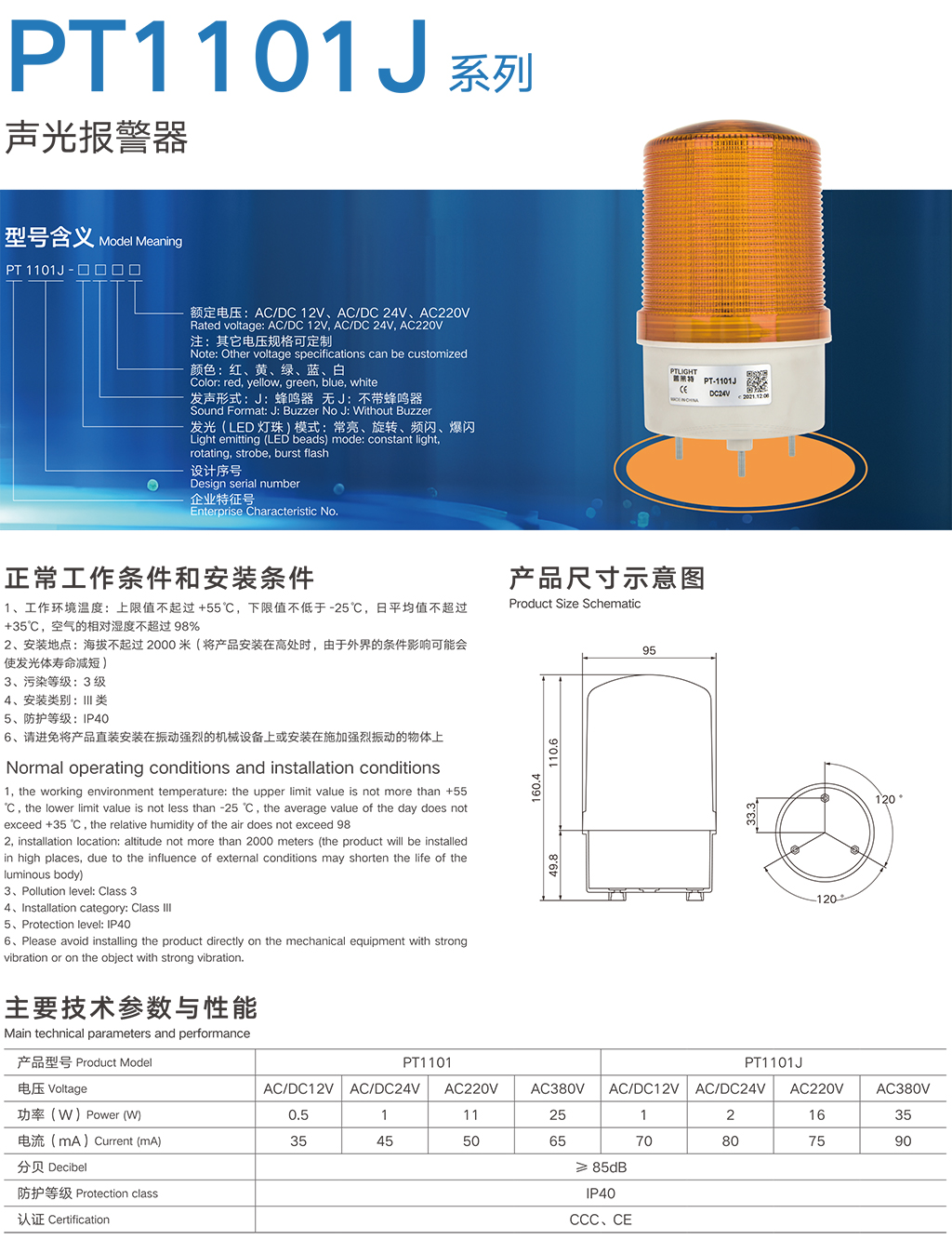 PT1101J系列声光报警器