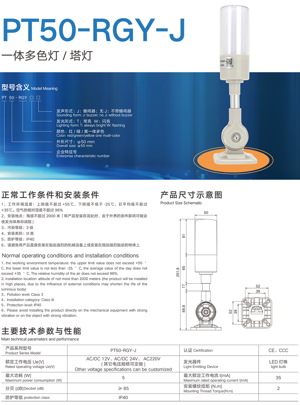 PT50-RGY-J一体多色灯/塔灯